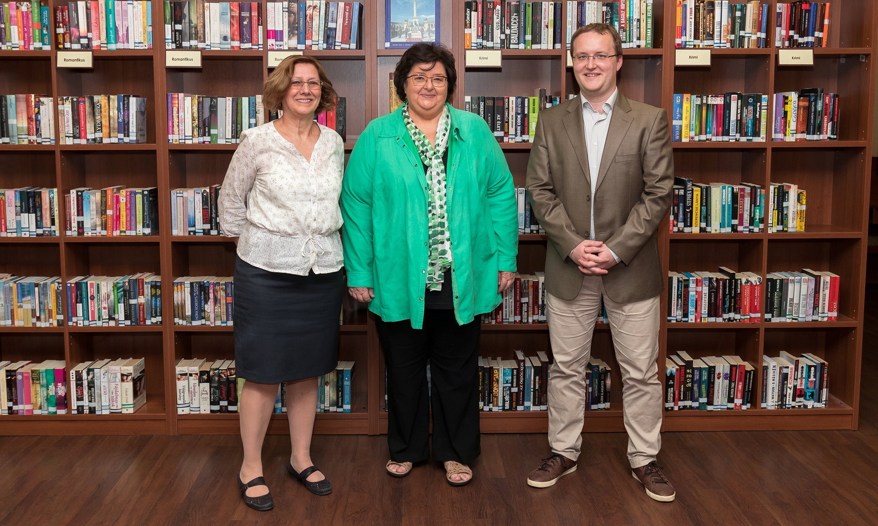 Fülöp Ágnes főigazgatóval és Vukovich Gabriellával, a Központi Statisztikai Hivatal elnökével a KSH Könyvtár alapításának 150. évfordulója alkalmából készült ünnepi fotósorozaton (fotó: Rózsa Ádám)